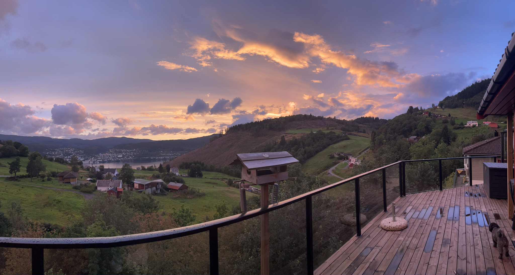 Til denne boligen i Førde er det montert opp; toppmontert glassrekkverk i sort - RAL 9005 i glansgrad 30. Avsluttet med håndløper på toppen. Montert 2024